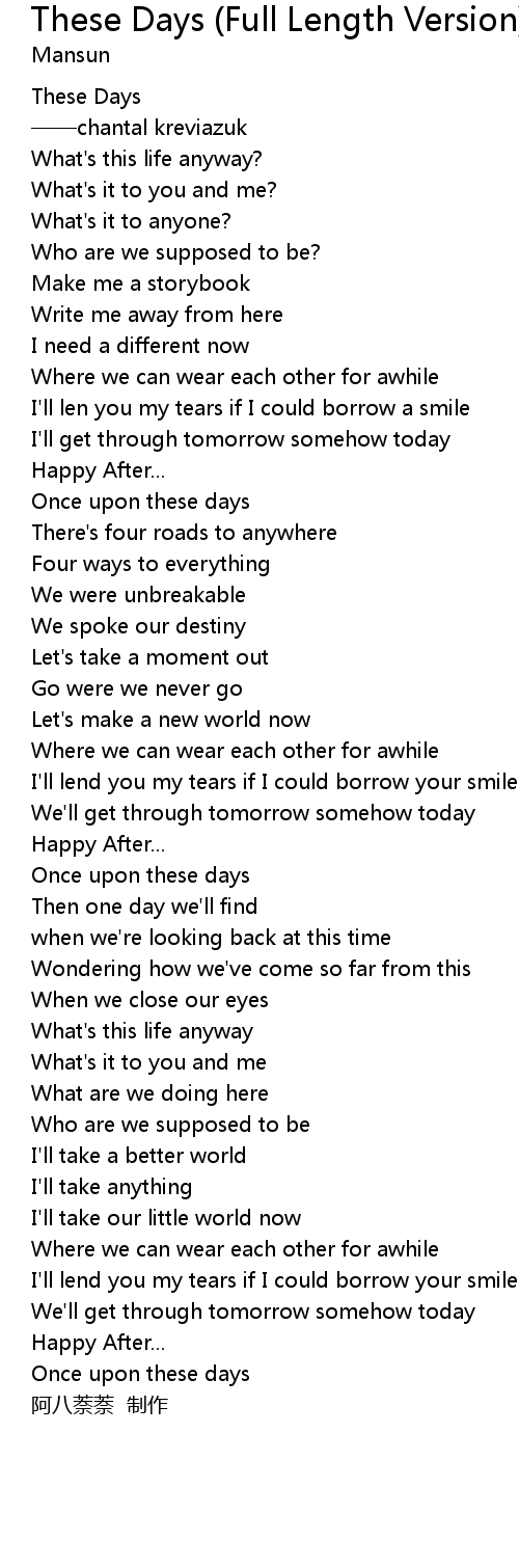 | [00:10.62] | These Days |