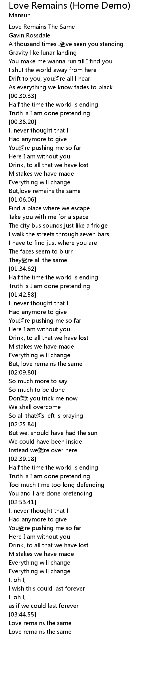 | [03:50.00] | Love remains the same |