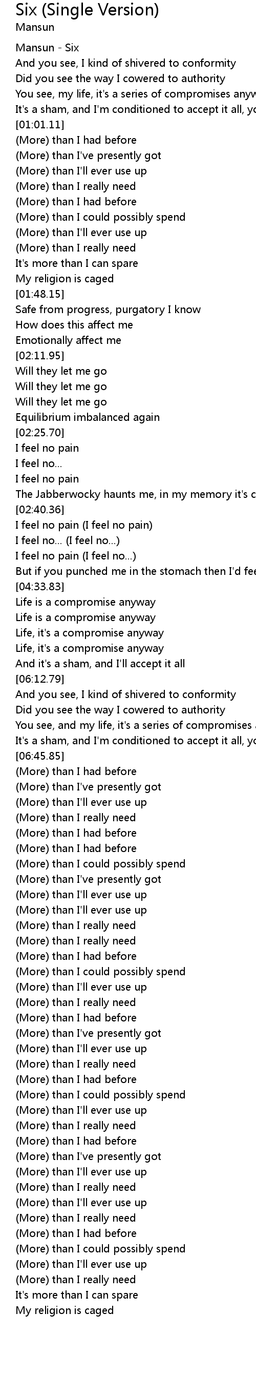 (More) than I really need |