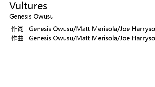 | [00:00.000] | 作曲 : Genesis Owusu/Matt Merisola/Joe Harryson/Paul Castelluzzo |