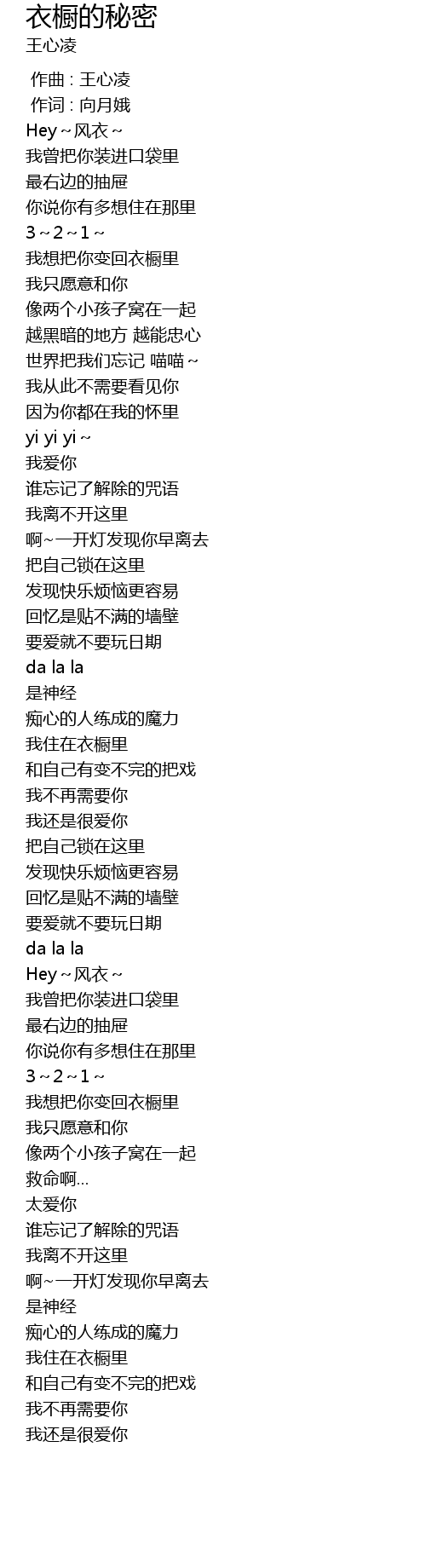 | Song | 衣橱的秘密 |