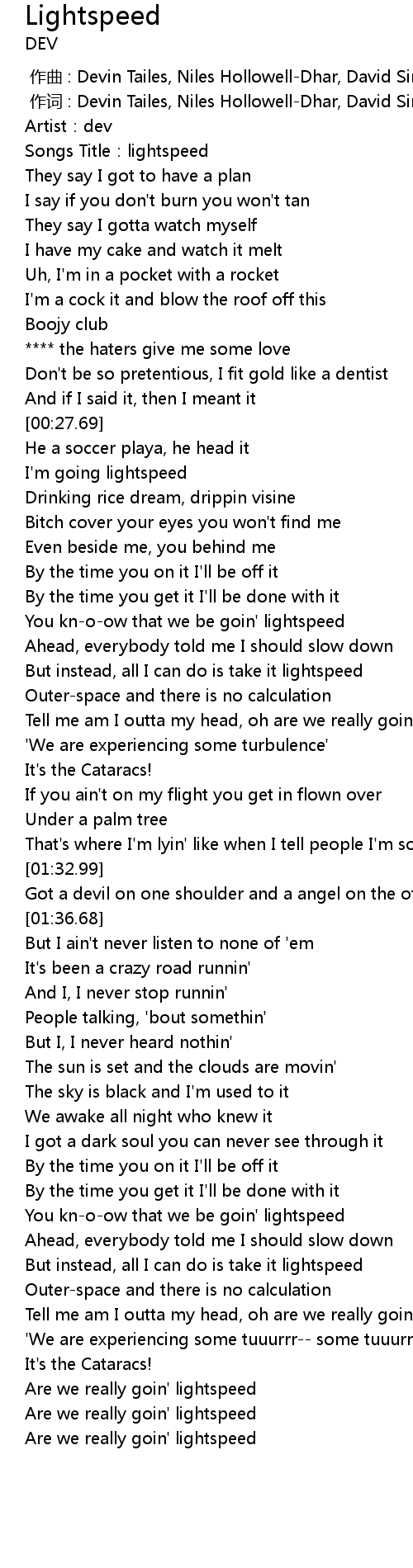 | [00:42.88] | You knoow that we be goin' lightspeed |