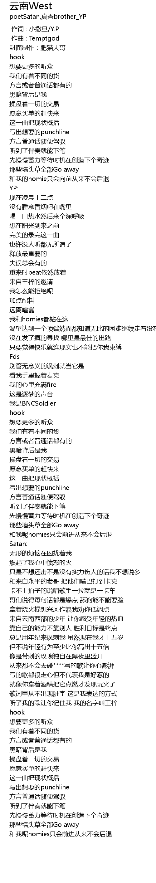 | [00:00.000] | 作词 : 小撒旦/Y.P |