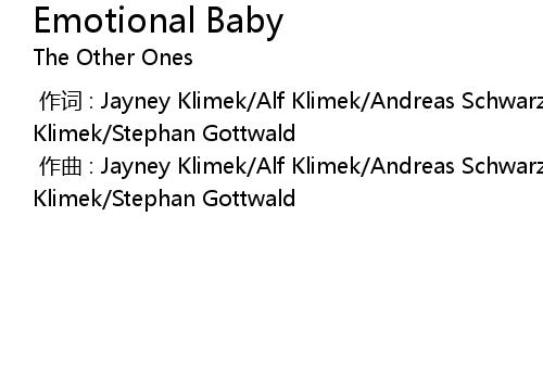 | [00:00.000] | zuò cí : Jayney Klimek Alf Klimek Andreas SchwarzRuszczynski Johnny Klimek Stephan Gottwald |