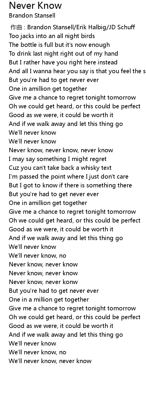 | [00:48.38] | Give me a chance to regret tonight tomorrow |