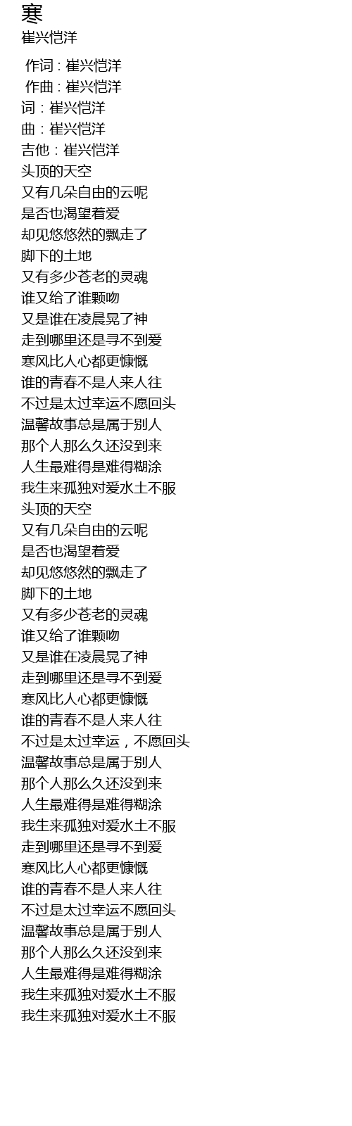 | [00:09.679] | 吉他:崔兴恺洋 |