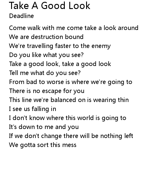 | Take a good look, take a good look | |
