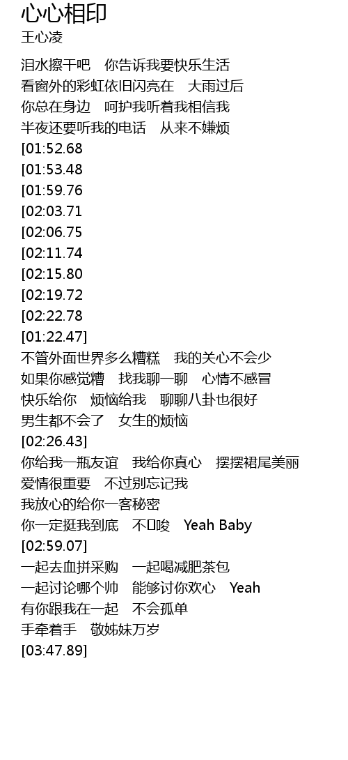 | [02:53.27] | 你一定挺我到底 不�唆 Yeah Baby |