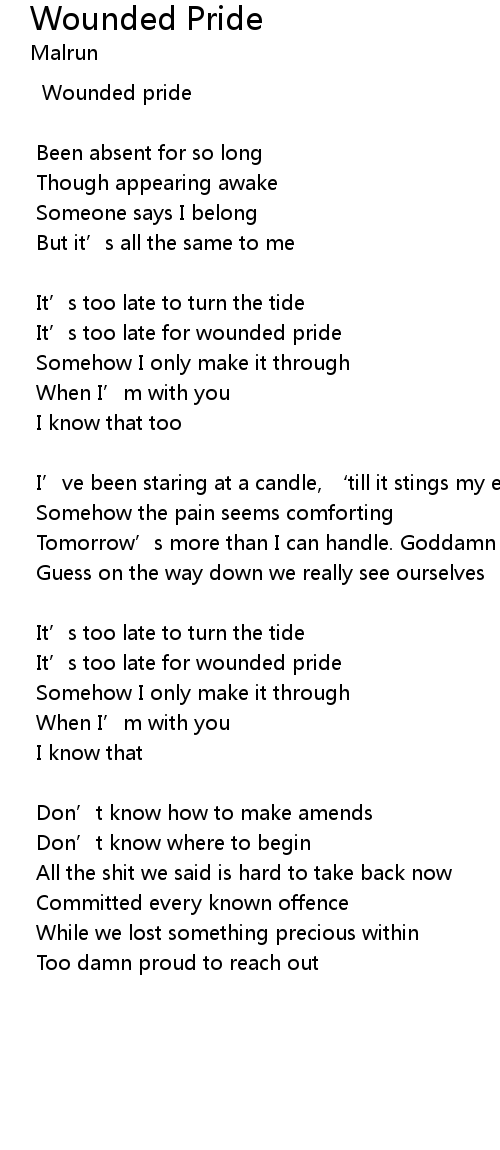 | It' s too late for wounded pride | |