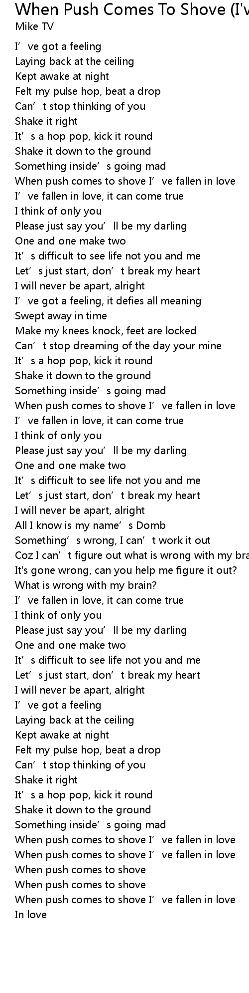 | [03:54.000] | When push comes to shove I' ve fallen in love |