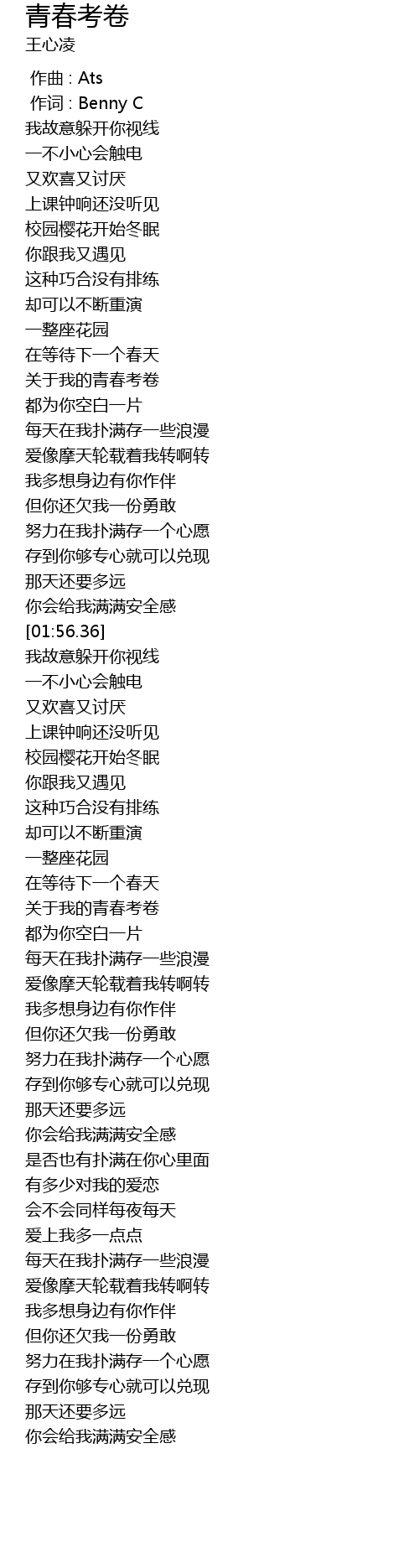 | [01:04.29] | 关于我的青春考卷 |