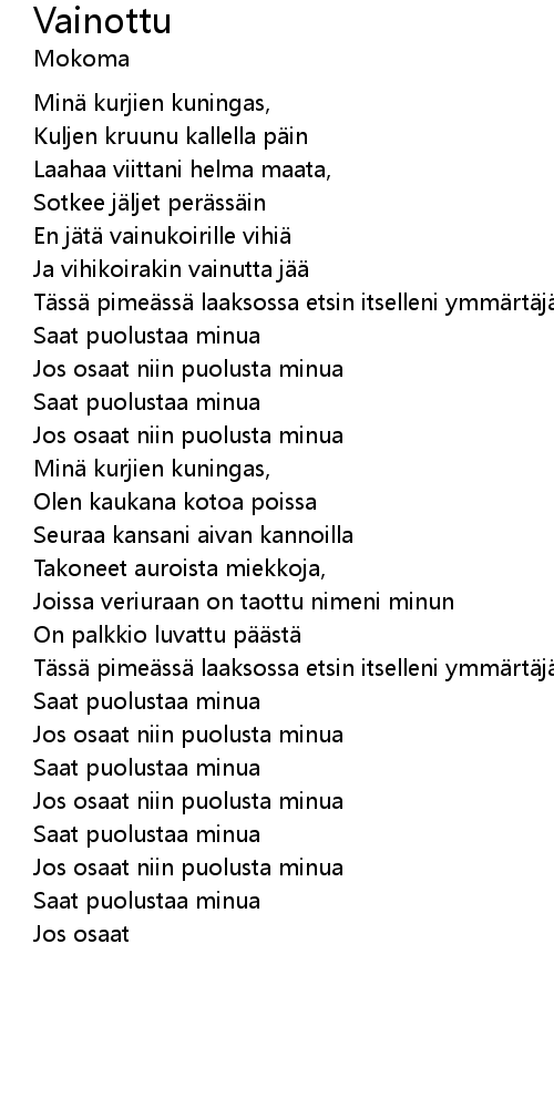| Min kurjien kuningas, | |