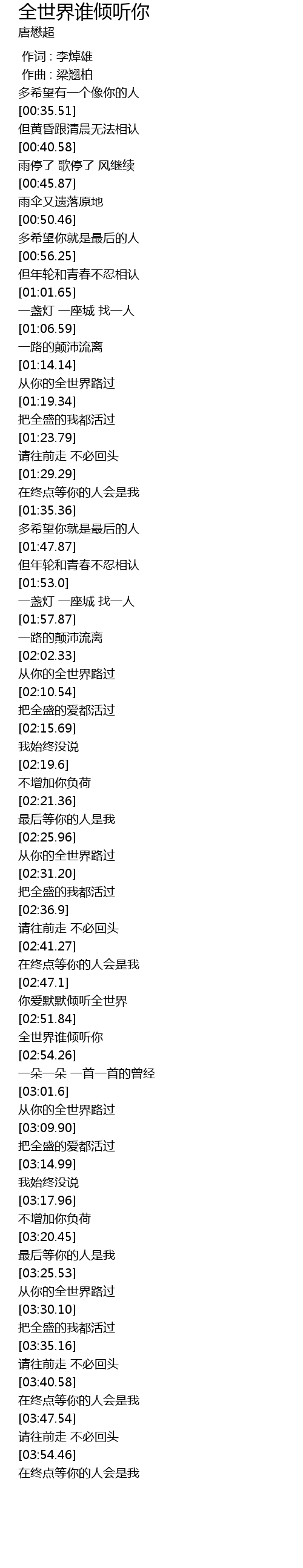 | [02:52.60] | quán shì jiè shuí qīng tīng nǐ |