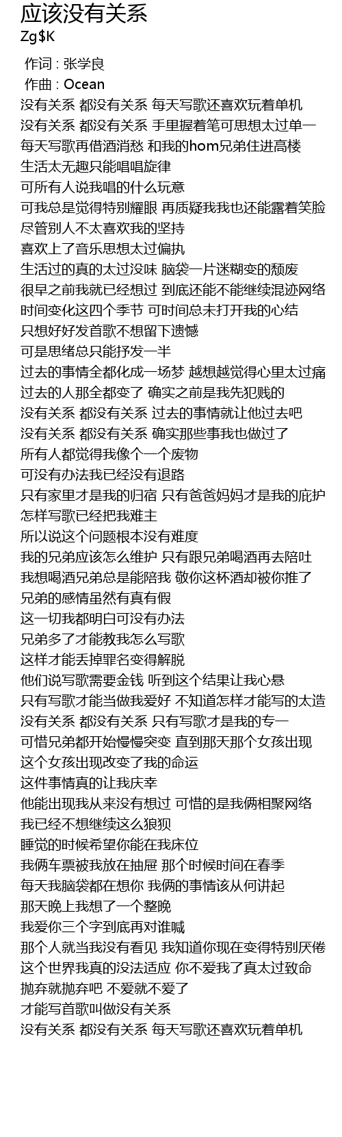 | [02:26.910] | mei you guan xi dou mei you guan xi zhi you xie ge cai shi wo de zhuan yi |