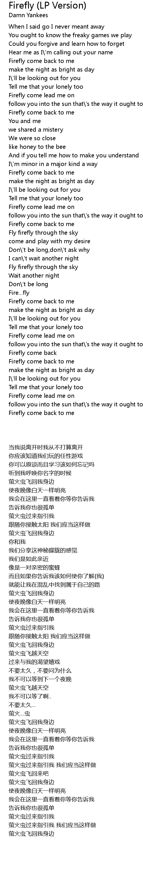 Firefly come back to me |