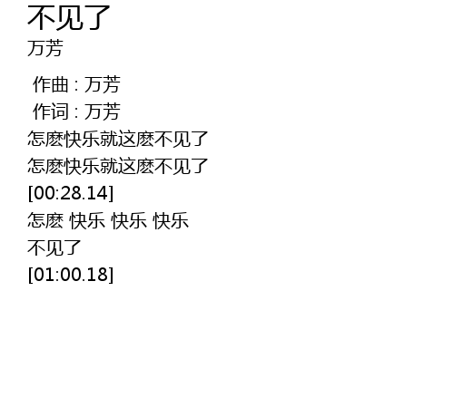 | [00:18.65] | 怎麽快乐就这麽不见了 |
