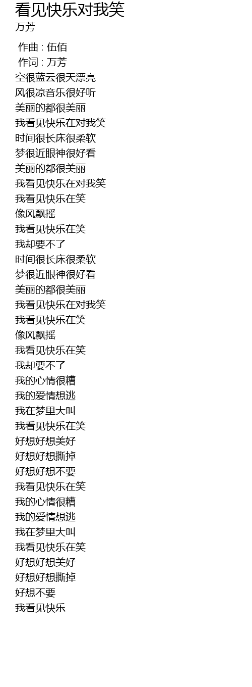 | [01:36.920] | wǒ kàn jiàn kuài lè zài xiào |