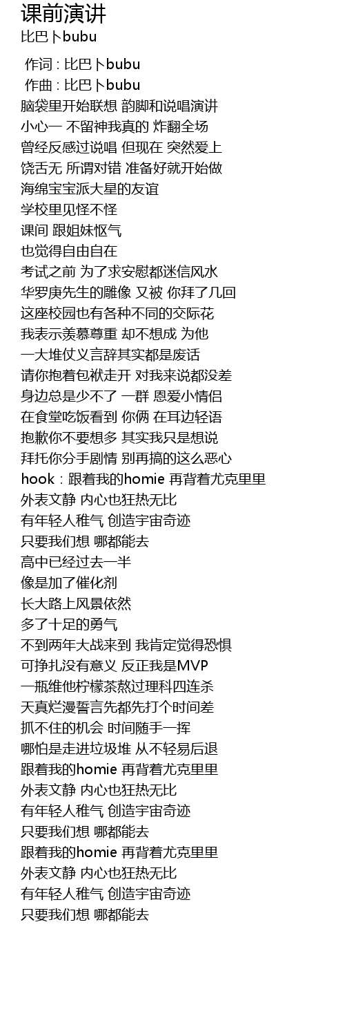 | [00:00.000] | 作词 : 比巴卜bubu |