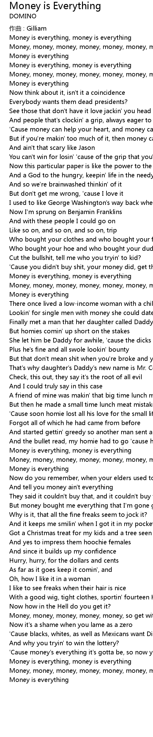 | ' Cause money' s everything it' s gotta be, so now you know | |