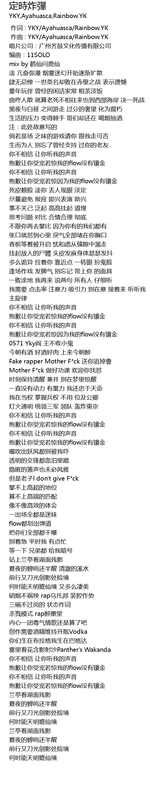 | [00:01.000] | 作曲 : YKY/Ayahuasca/Rainbow.YK |
