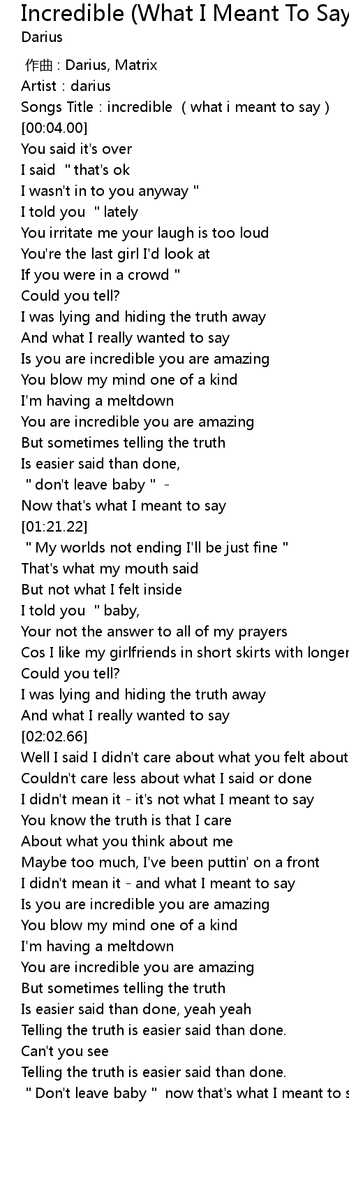 | [00:01.56] | Songs Title: incredible what i meant to say |