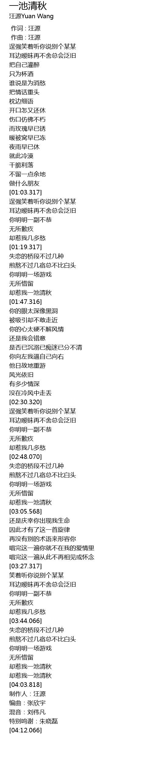 | [03:01.566] | 却惹我一池清秋 |