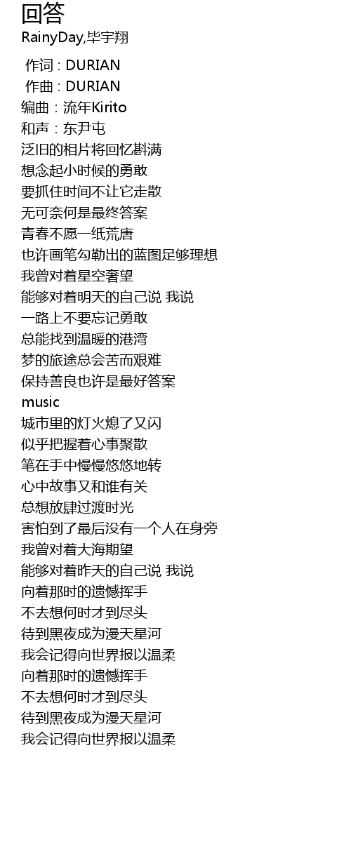 | [01:46.51] | bǎo chí shàn liáng yě xǔ shì zuì hǎo dá àn |