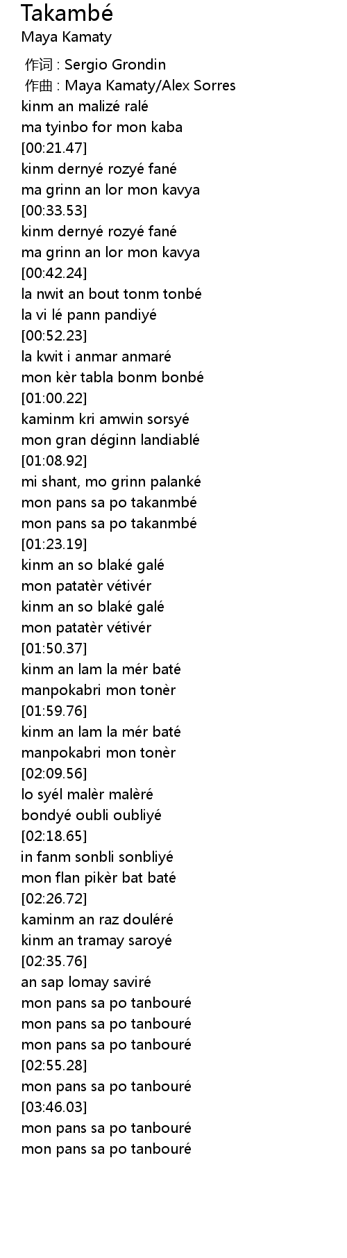 | [00:01.000] | zuò qǔ : Maya Kamaty Alex Sorres |