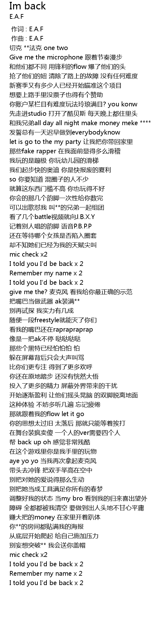 | [00:34.63] | 和我兄弟all day all night make money meke **** |