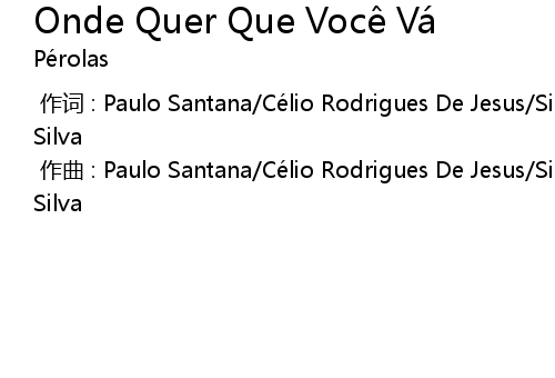 | [00:00.000] | 作曲 : Paulo Santana/Célio Rodrigues De Jesus/Silvio Luis da Silva |