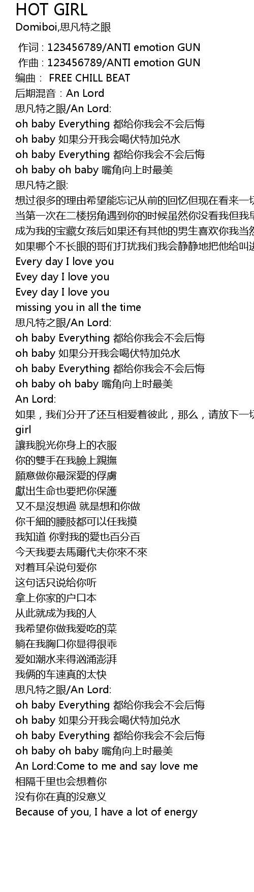 | [01:42.18] | rú guǒ, wǒ men fēn kāi le hái hù xiāng ài zhe bǐ cǐ, nà me, qǐng fàng xià yī qiè de gù lǜ, yīn wèi nǐ hái shì wǒ de Hot girl |