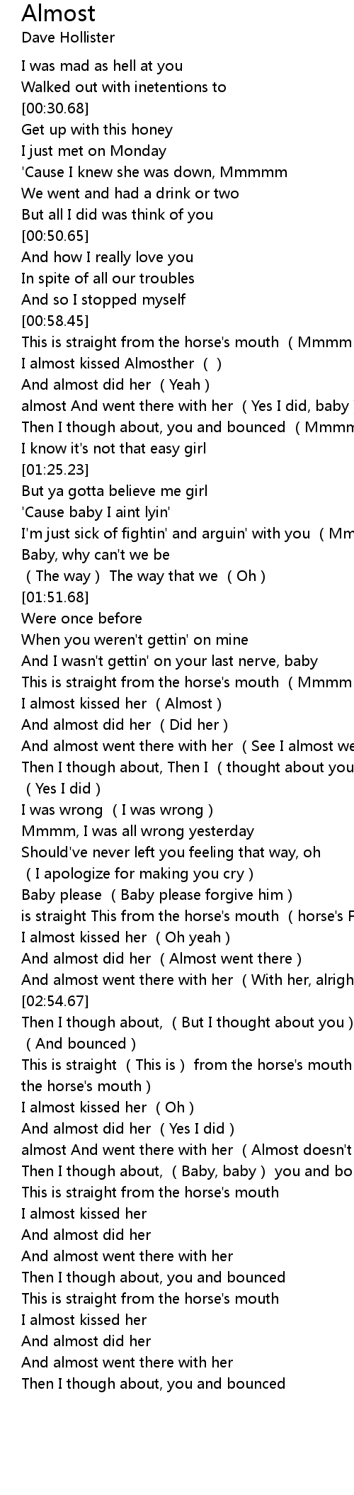 | [03:11.98] | almost And went there with her (Almost doesn't count baby) |