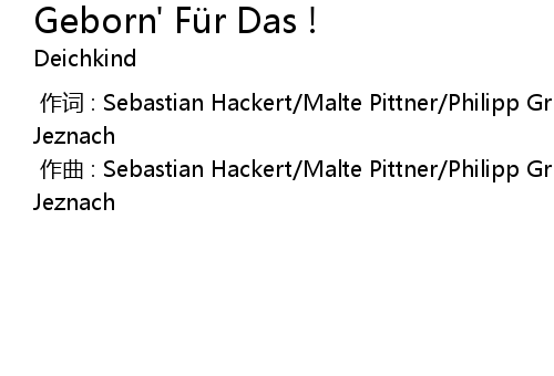 | [00:00.000] | 作词 : Sebastian Hackert/Malte Pittner/Philipp Grütering/Bartosch Jeznach |