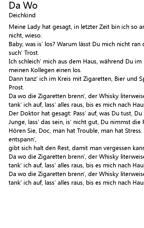 | Da wo die Zigaretten brenn', der Whisky literweise flie t, | |