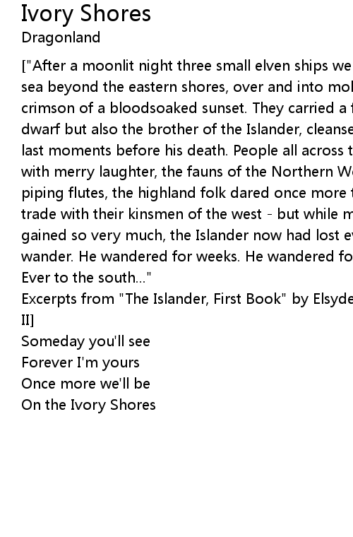 ["After a moonlit night three small elven ships were drifting into the nameless sea beyond the eastern shores, over and into molten silver touched by the crimson of a bloodsoaked sunset. They carried a fallen Elf-Queen, one young dwarf but also the brother of the Islander, cleansed and redeemed in the very last moments before his death. People all across the Realms rose from tyranny with merry laughter, the fauns of the Northern Woods once more played their piping flutes, the highland folk dared once more travel with wooden carts to trade with their kinsmen of the west - but while most had lost something and gained so very much, the Islander now had lost everything. And so he came to wander. He wandered for weeks. He wandered for years, always to the south. |