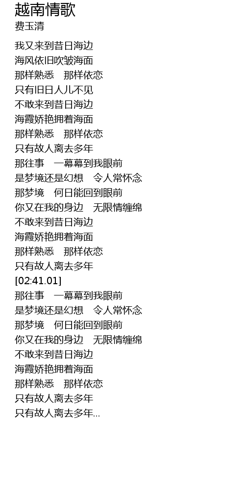 | [02:31.01] | zhǐ yǒu gù rén lí qù duō nián |