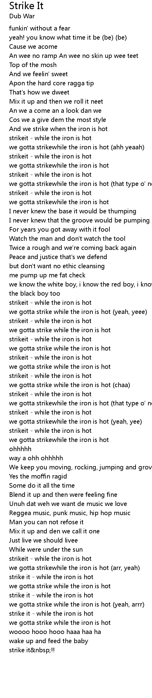| we gotta strikewhile the iron is hot (that type o' noise) | |