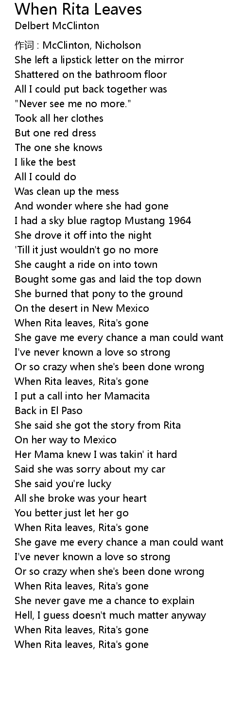 | Song | When Rita Leaves |