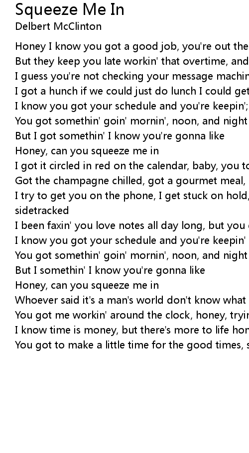 You got to make a little time for the good times, so honey can you squeeze me in |