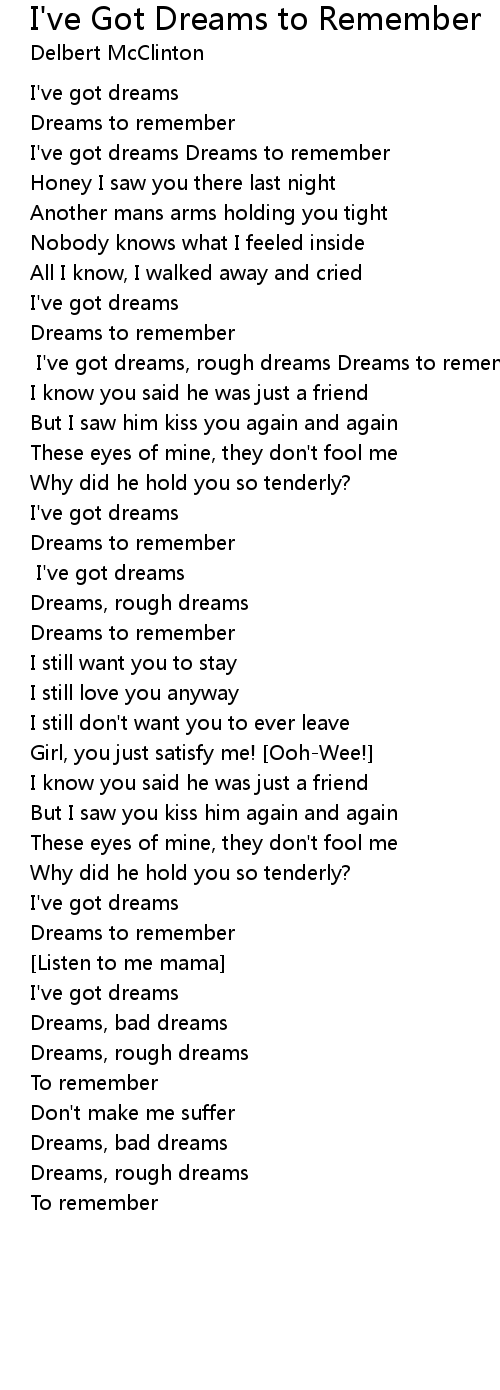 [Listen to me] I've got dreams, rough dreams Dreams to remember |