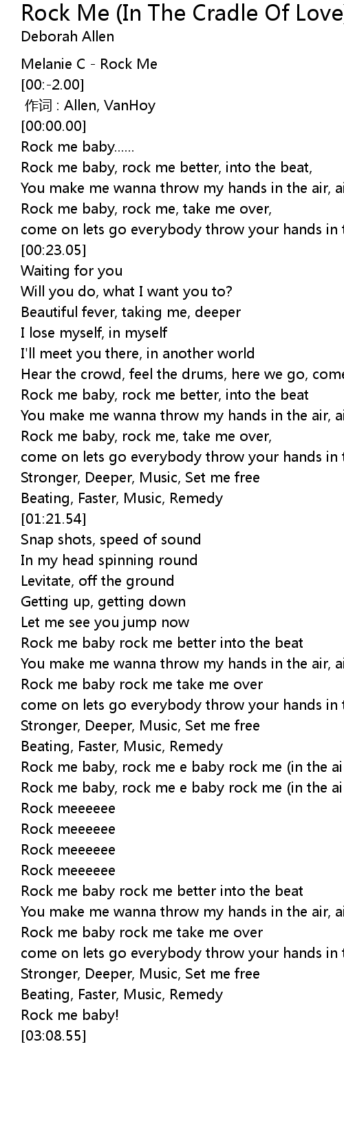 | [02:06.78] | Rock me baby, rock me e baby rock me (in the air) |