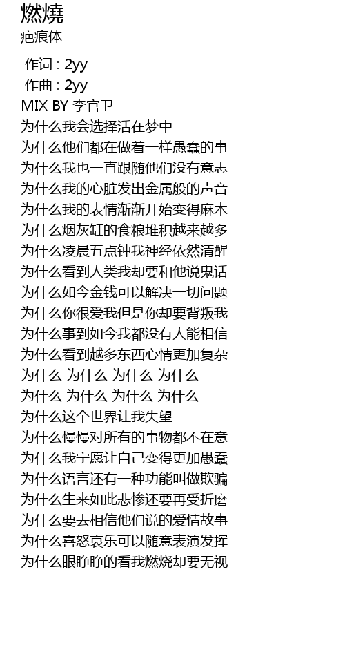 | [02:40.940] | 为什么眼睁睁的看我燃烧却要无视 |