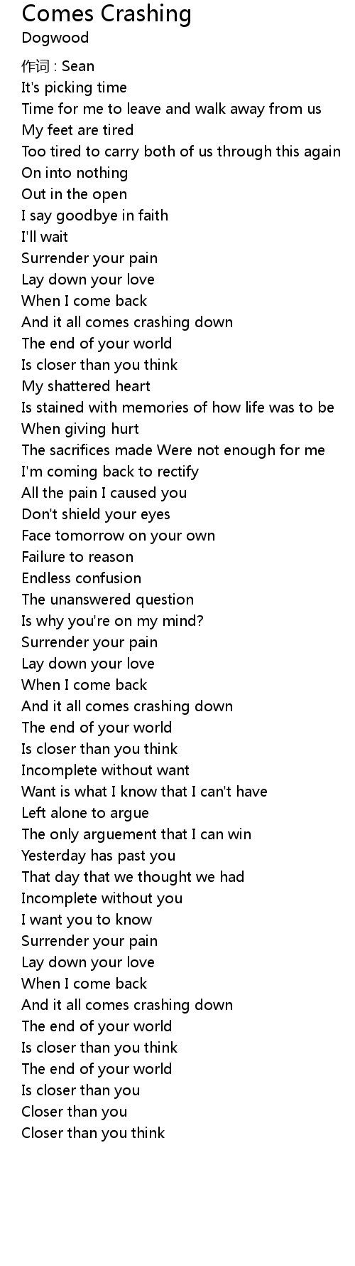 | Song | Comes Crashing |