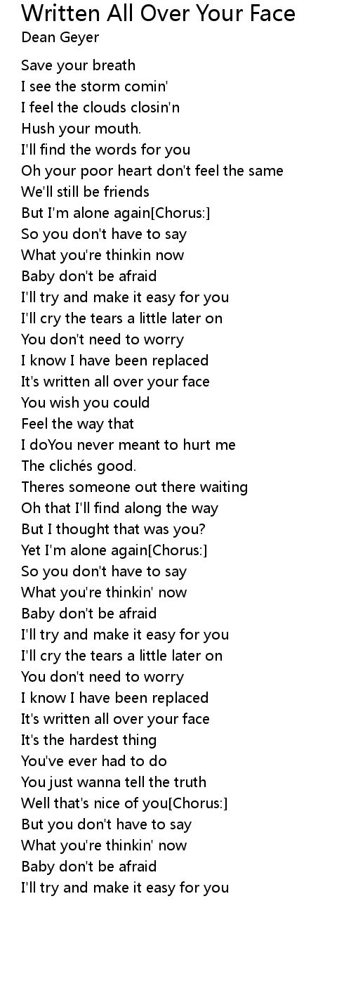 | Song | Written All Over Your Face |