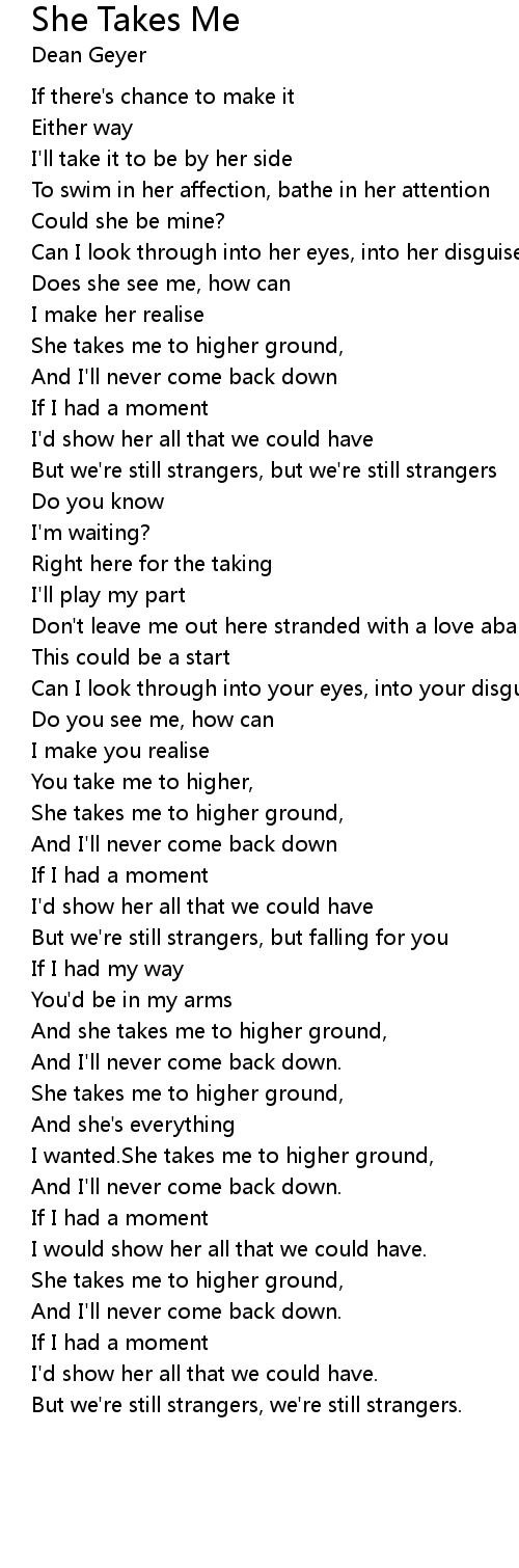 I wanted.She takes me to higher ground, |