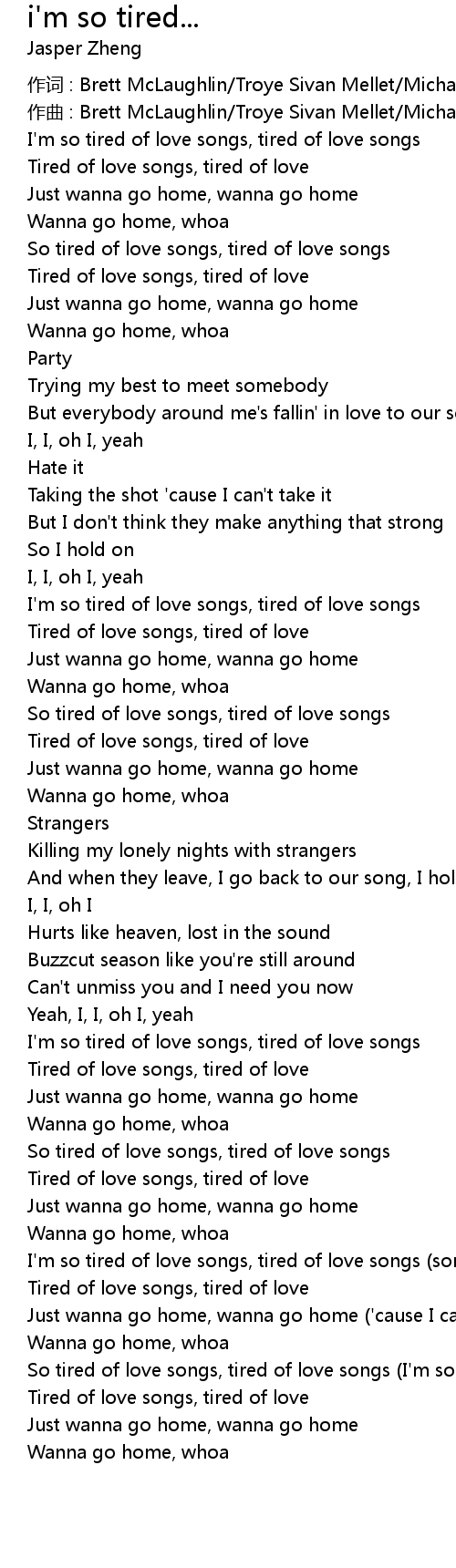 | I' m so tired of love songs, tired of love songs someone take me home | |