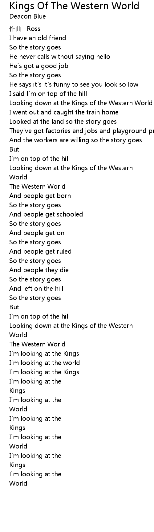 | Song | Kings Of The Western World |