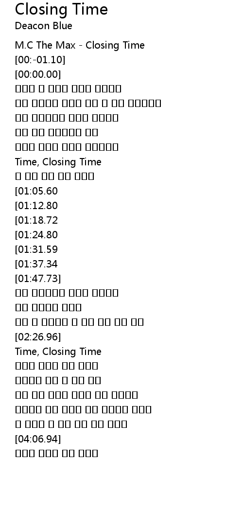 | [03:34.88][01:18.72] | Time, Closing Time |