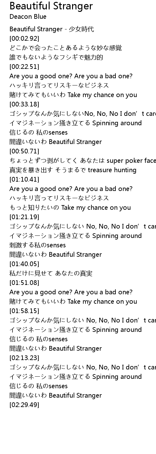 | [02:24.78] | 間違いないわ Beautiful Stranger |