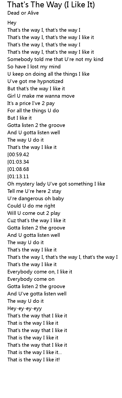 [01:49.92][01:03.34] Everybody now, that's the way I like it